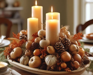 Candle clusters = instant cozy. Try cinnamon, clove, or pumpkin spice scents. (Just remember: this is ambience, not an indoor campfire. Save the marshmallows for later.)