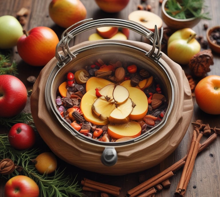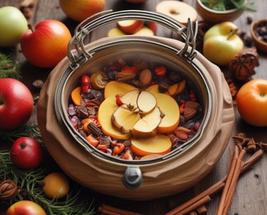 Simmer a stovetop potpourri. Apples, oranges, cinnamon sticks, and cloves, simple, natural, and divine.
